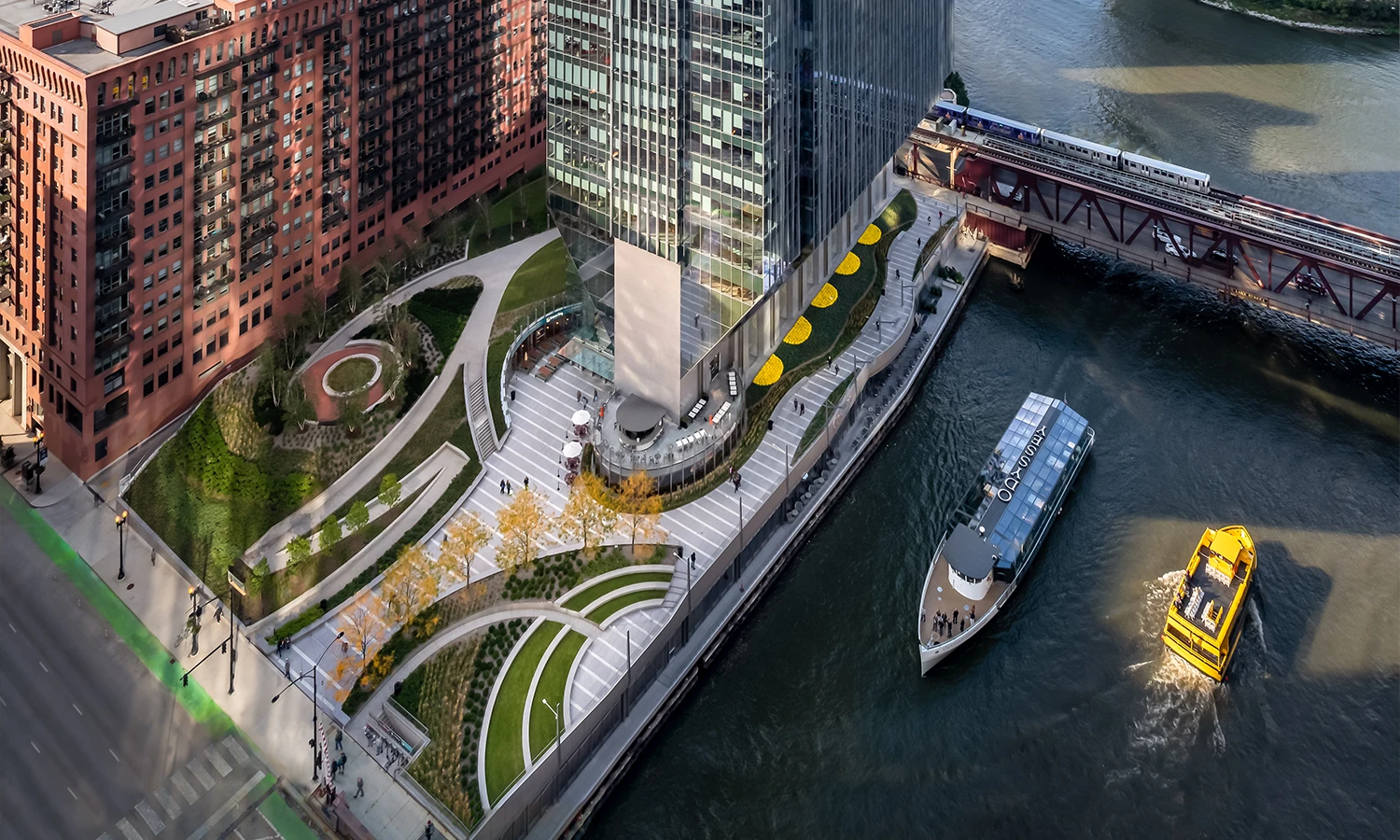 If you have dreamed of an outdoor wedding, set against a stunning background, then we have the ideal location for you. Nestled along the scenic Chicago River, this open-air amphitheater offers a stunning backdrop of city skyscrapers and flowing water. Also perfect for live music, performances, and community gatherings, it’s where nature meets culture in the heart of downtown.