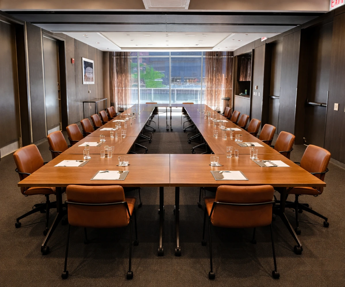 Host your next meeting with impact in our sophisticated boardroom designed for executive gatherings and smaller group sessions from 5 to 40 people. Located along the river in downtown Chicago, this refined space features floor-to-ceiling windows that flood the room with natural light and offer inspiring views of the water and cityscape. Ideal for client meetings, strategy sessions, or small team off-sites, the boardroom combines privacy, comfort, and a striking urban backdrop.